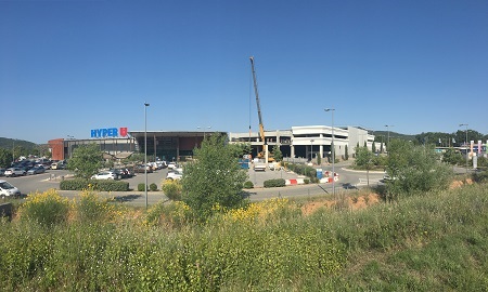 travaux de rénovation et d’extension du centre commercial HYPER U de la commune des Arcs (83) Le projet consiste en la création d’extensions autour du bâtiment existant pour augmenter la surface de vente de l’hypermarché, créer ou rénover des zones de production (cuisine, boulangerie) et en la rénovation de la surface de vente actuelle ainsi que du mail.